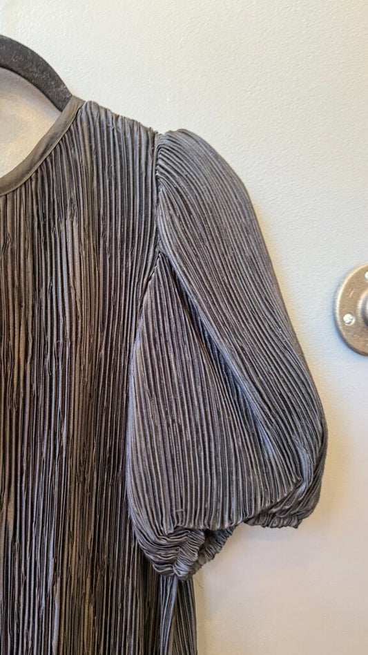 Pleated Puff Sleeve Midi Dress