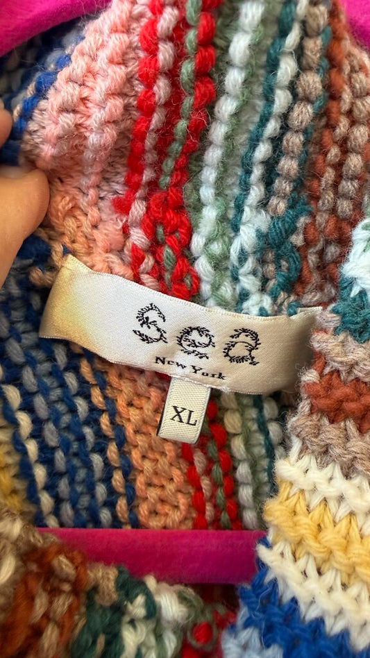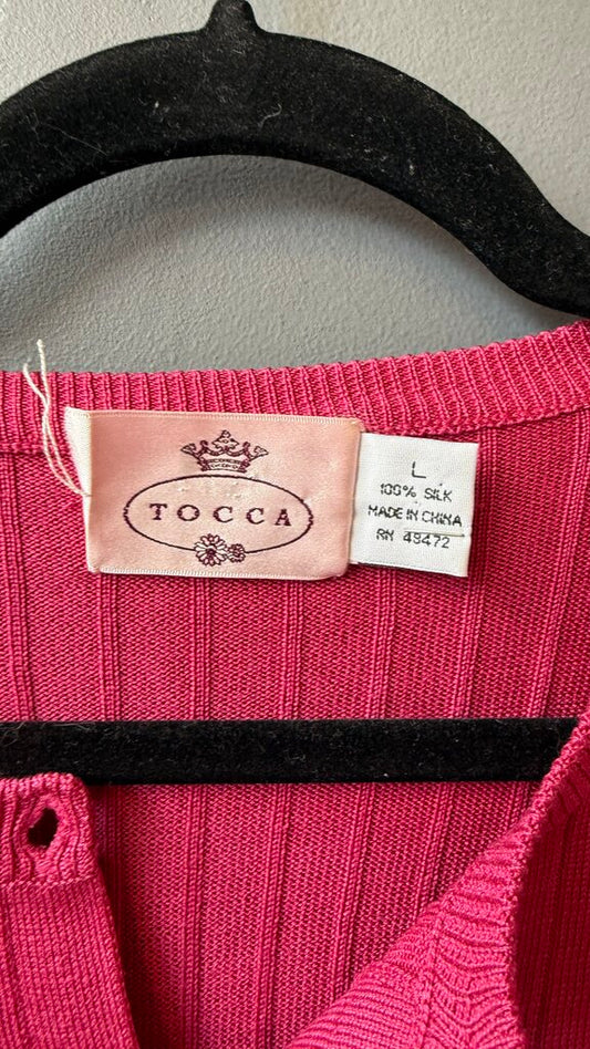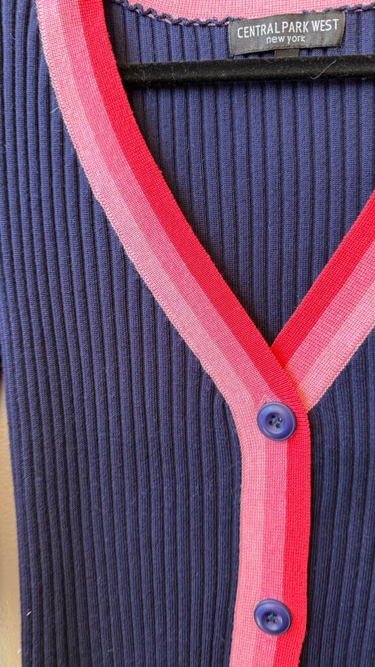 Ribbed Pink Trim Cardigan Sweater