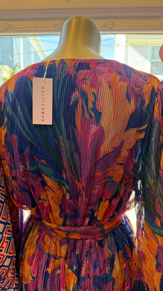 Floral Metallic Pleat Dress