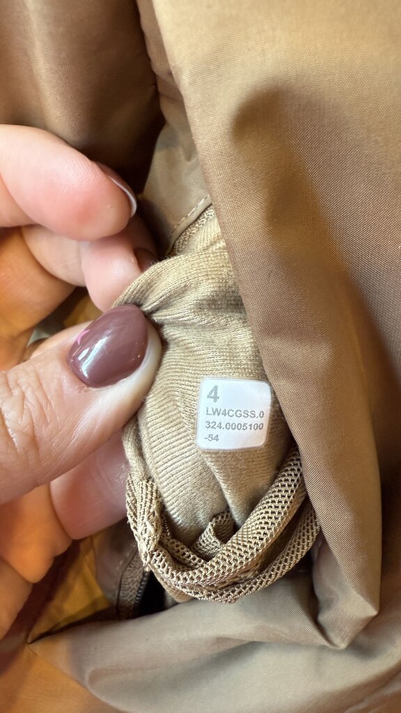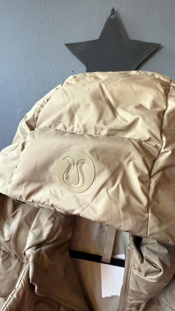 W4CGSS, Wunder Puff Mid-Length Vest Filbert Tan / Trench, retails $248. water-repellent, softmatte™ fabric Water-repellent Windproof 600-fill-power goose down insulates through extra loft 100% of our down is certified to the Responsible Down Standard (RDS) by Control Union (No. 847515) This product contains recycled polyester made from repurposed plastic waste relaxed fit, bum-covering length Relaxed fit feels roomy and can be worn over larger layers. Size down if you prefer a slimmer fit features Zippered exterior pockets with a hidden phone sleeve Interior pockets hold the essentials Removable hood Cinch the interior waist and hem drawcord to customize your fit