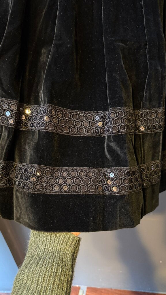 Pleated Velvet Knee Length Skirt